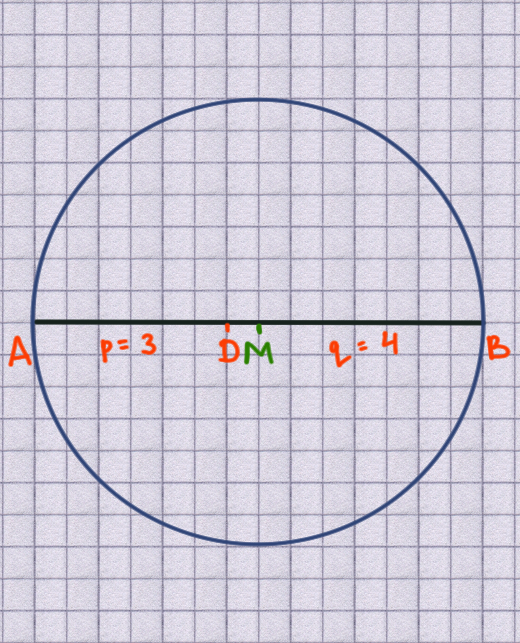 draw a with centre M and radius $r = \overline{MA}$ (or $\overline{MB}$ )